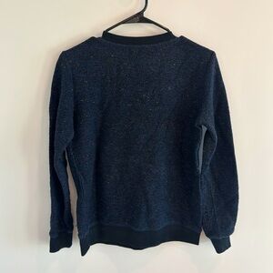 Warm, cute navy blue sweater with a bit of color woven in. Can be worn casual or dress up! The zip on the shoulder opens for added style!