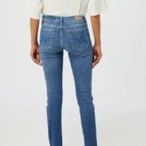 These are a classic medium blue denim, fitted through the hips and slightly taper at the legs. Power stretch for shape hugging silhouette with premium recovery.