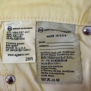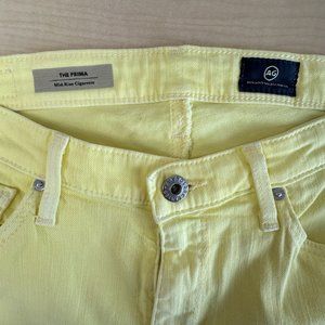 AG Prima Mid-rise Cigarette Jeans in Yellow. Mid-rise, slim leg. Size 28. No visible flaws or stains. Condition gently used.