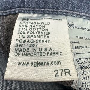 AG Adriano Goldschmied Size 27 The Prima Mid Rise Cigarette Stretch Jeans. There is some fading and some stretching at bottom fly besides that in good preowned condition.
