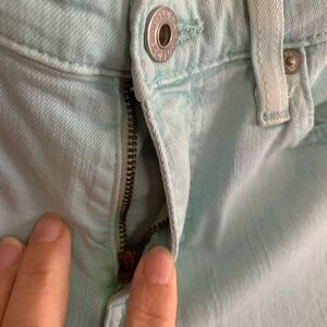 Excellent Condition - "Seafoam Froth" Green. Material is Cotton, Tencel and PU. Rise is 7"