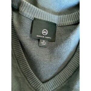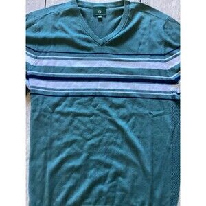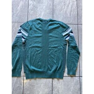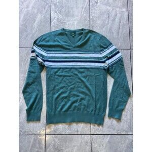 AG Adriano Goldschmied Sweater Mens Medium Green V Neck Stripe Cotton Cashmere