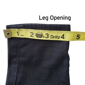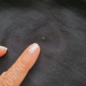There are two small spots on right leg one small area near bottom of thigh near knee and one very close to bottom hem. (see last photos) Both are fairly subtle due to the very dark black color of the jeans.