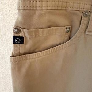 The solid beige khaki color and flat front give them a classic, preppy lookThe AG Adriano Goldschmied brand ensures high quality and a fashionable fit for the modern city man.