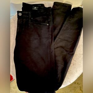 AG Goldscmeid The Farrah skinny high rise jeans .Chic dark wash black denim jeans with classic AG button and zip closure and back patch, southgate printed pockets ,AG trademark tacks, EUC washed & ready to wear Perfect for any occasion. Premium Cotton, modal, polyester,polyurethane blend, sz 25R