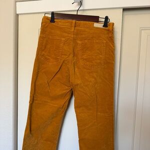Add a pop of rich fall color to your wardrobe with these AG “The Isabelle” corduroy pants in a beautiful golden mustard hue. Made in the USA with soft stretch corduroy, they combine comfort and structure for a perfectly tailored look.