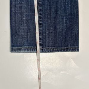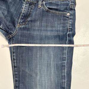 Measurements in photos is from seam to seam in the waist and bottom of crotch to bottom of length.. Please compare measurements to clothing you already own before ordering. Jeans have been laundered but always suggest washing any pre owned garments.. please look at all photos and feel free to contact me with any questions..