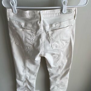 Great pre-owned condition! No notable flaws, but some notes of wear - mainly on the AG leather tag on the back waistband. Please see photos! You can also see the tone of the white (slightly off white) in the photos too.