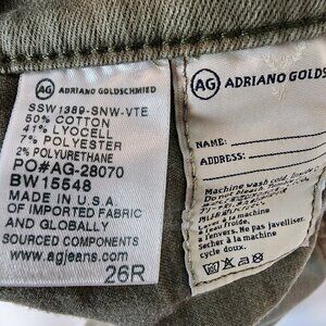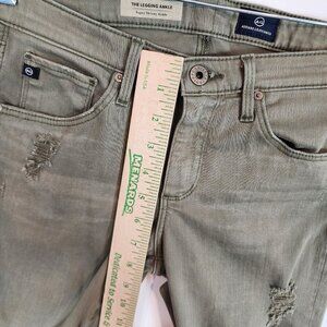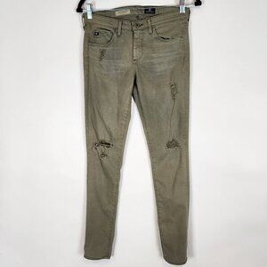 AG Adriano Goldschmied The Legging Super Skinny Ankle Jeans Olive Distressed 26