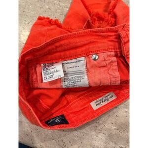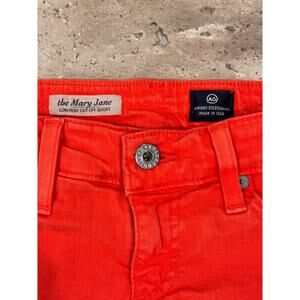 AG Adriano Goldschmied "The Mary Jane" cutoff shorts in a vibrant orange color.