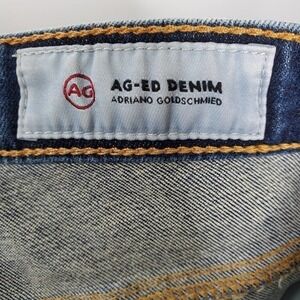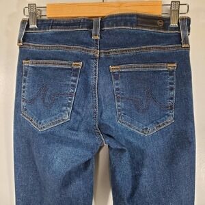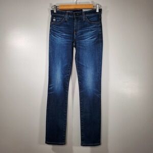 Features : slim fit, faded dark wash, whiskering, mid-rise, ankle length, stretch denim, AG, classic, original, versatile, casual, fall, spring, summer, winter