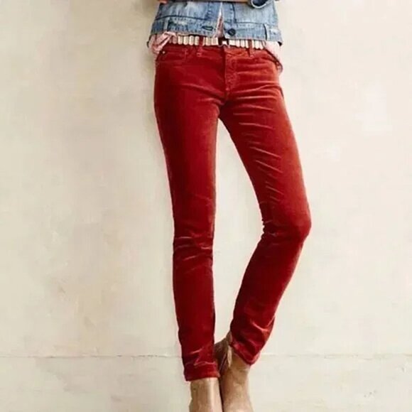 AG Adriano Goldschmied Jeans Women 26 Rust Corduroy Stevie Slim Straight Stretch