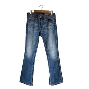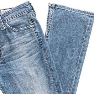 AG Adriano Goldschmied The Jodi Crop side slit Jeans light Blue Denim size 25. High rise slim flare crop. Light/medium wash. 5 pocket style, single button and zip closure.