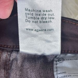 AG Adriano Goldschmied The Stilt Cigarette Leg Brown Pants Sz 29