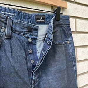 AG jeans, Adriano Goldschmied, Twisted Alexxis, raw hem jeans, high rise jeans, vintage fit denim, straight leg, button fly, non-stretch denim, premium denim, size 27 jeans, made in Mexico, South Gate California, designer jeans, dark wash denim, distressed hem, trending denim, classic fit, edgy style, Poshmark jeans, y2k jeans, street style, minimalist fashion, sustainable denim, west coast fashion, fall denim trends, closet staple
