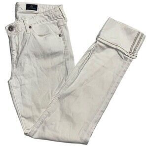 AG Adriano Goldschmied Womens 27 White Stevie Cuff Slim Straight Cuffed Jeans
