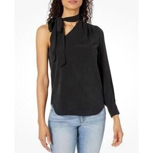 AG Adriano Goldschmied Women's Black One Shoulder Malia Tie Neck Blouse Size S