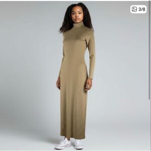 AG Adriano Goldschmied Women’s Tan Ribbed Cotton Turtleneck Midi Dress Small m5