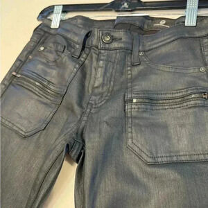 AG Adriano Goldschmied black leather look jeans. Zipper on front pockets size 26