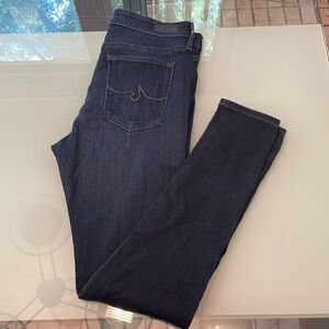 AG Adriano Goldschmied jeans 32r the Farrah skinny high rise skinny very soft and stretchy laying flat approximately 31 waist 29.5 inseam 11 rise dark blue wash
