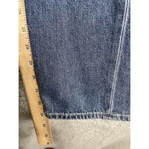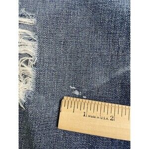 Good pre-owned condition, light staining on the bottom of legs (where it was always rolled up) small stain on right leg (see in picture) not noticeable because of the ripped design of the jeans. See all photos for measurements and details