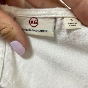 AG Adriano Goldschmied women's size Small white Jennifer top in excellent preowned condition, found some very minor makeup smudging inside the collar noted in photos.