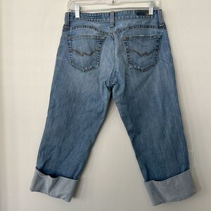 Medium Wash denim long Capri or Bermuda shorts with cuff in VGUC.