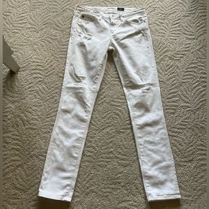 AG Adriano Goldschmied White The Stilt Cigarette Leg Destroyed Jeans
