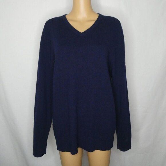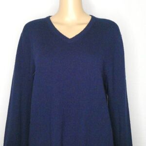 Beautiful dark blue 70% wool 30% cashmere v neck sweater. From AG's Green Label. Beautiful piece. It does have a lot of fuzzing/almost pilling but with a sweater shave it could be back to looking like new!