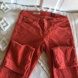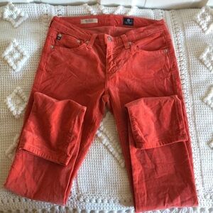 AG Adriano Goldschmieo "The Stevie" Slim Straight Mid Rise Orange Corduroy Jeans