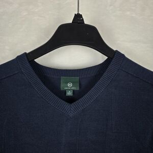 AG Adriano Green Label Men Navy V-Neck Sweater Rayon Blend Medium Vented Panels