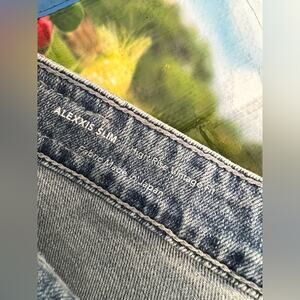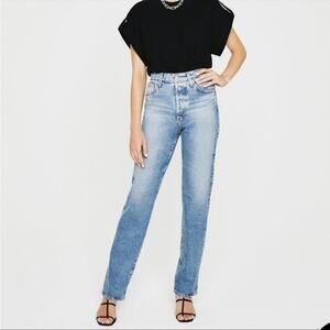 Adriano goldschmied jeans with button fly and high rise. Alexxis slim jeans. In excellent, like new condition. Approx 14 inches at the waist laying flat. 10.5 inch rise. 29 inch inseam. Retail $215.