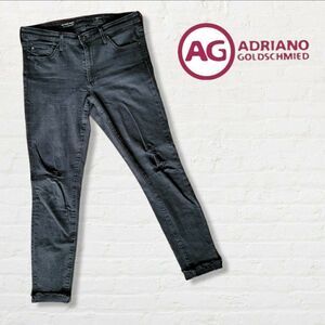 AG Adriano Goldschmeid Middi Ankle Jeans Women's Sz 29 Skinny Raw Hem Black