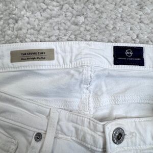 AG Adriano Goldschmied The Stevie Ankle/Crop Slim Straight Jean. Gently preowned in overall good condition. No rips or holes. . Zipper fly with button closure. Has been altered/hemmed not a cuffed style, slim/straight crop look. Soft and stretchy.