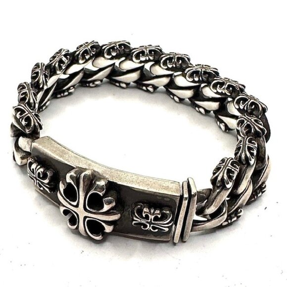A&G Amal Guessous Rare Fancy Cuban Triple Cross ID Bracelet .925