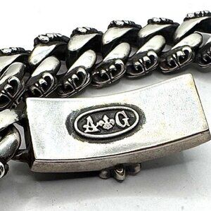 Very Heavy Solid Sterling Silver A&G Bracelet Features Single ID Bar