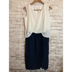 AG Aquagirl Dress Womens Medium Navy & Cream Mesh Lined Layered Lagenlook Satin