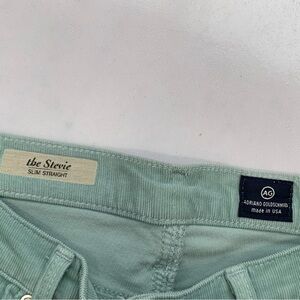 AG Corduroy Pants Woman 27 Stevie Slim Straight Low Rise Light Green Stretch