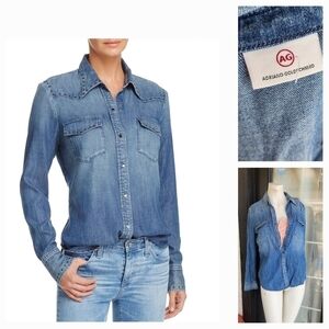 Channel the Wild West's unabashedly free spirit in AG's stud-trimmed chambray shirt, cut with a feminine silhouette and from supersoft chambray.