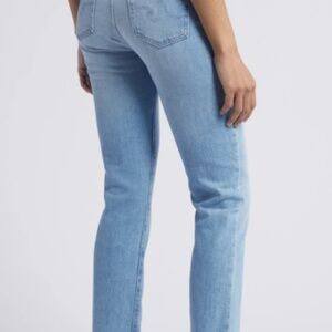 AG DENIM The Mari faded high rise straight stretch jeans. Size 28R. A slim fit and straight leg that hits right above the ankle stretchy and comfy denim jeans. 91% Cotton, 8% polyester, 1% polyurethane. Condition: Excellent; gently worn; well maintained; no stains, marks, holes, or rips.Note: Last photos are stock photos (in lighter color) to show fit.
