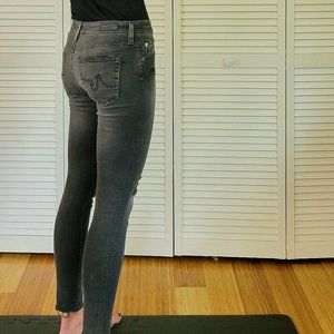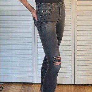 AG Farrah High Rise Skinny Ankle Raw Hem Jean in Eroded Grey Destroyed