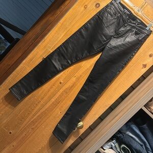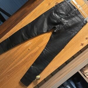 These jeans are in perfect condition. A beautiful black waxed jean. 31 inch inseam 10 inch rise.