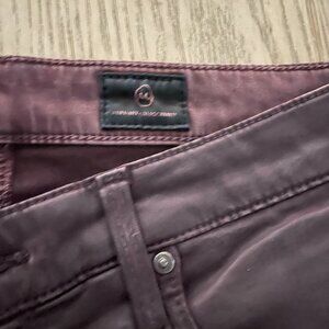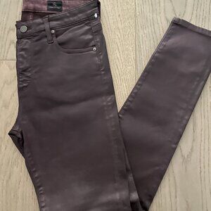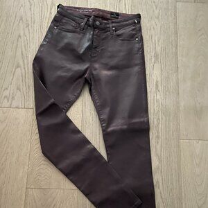 AG Farrah skinny jean for women features a leatherette-coated burgandy. 27
