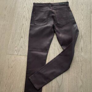 AG Farrah Ankle skinny jean for women features a leatherette-coated burgandy hue, cut with a flattering high/mid-rise waist and cropped length at the ankle. This women’s jean is designed in our Leatherette Luscious Super Stretch Sateen fabrication. It is a sample. never been worn, but no tags.