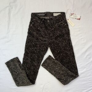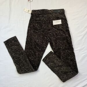 AG For Anthropologie Stevie High Rise Ankle Velvet Pants Paisley Black Size 24