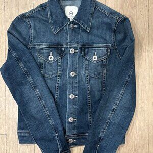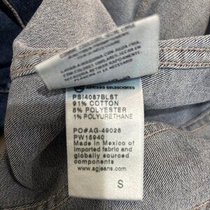 The Robyn Jacket by AG Jeans® where vintage vibes and today's trends merge seamlessly. This tailored denim piece features a sleek, slim cut that contours to your body for a flattering fit. Designed with long sleeves, a collared neck, and a button front closure, it's perfect for layering with a touch of sophistication. Two chest button pockets offer both function and flair, while adjustable waist tabs provide a customizable silhouette.