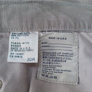 AG Jeans The Stevie Slim Straight Light Gray Corduroy Pants Womens 30 R
