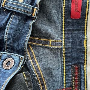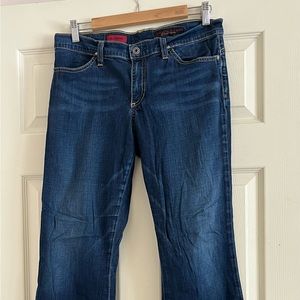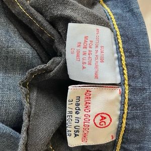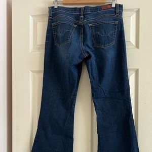 AG jeans. The legend. 95% cotton. 5% stretch. Rise is 8.5 inches. Inseam is 31 inches. Wide leg opening 10 inches.