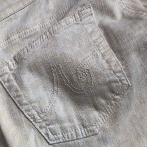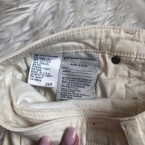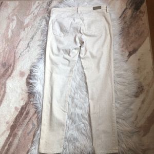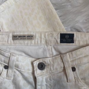 { AG Jeans } White & Cream Leopard Print Skinny Jeans. Retail $200. Size 29. White jeans with a light tan leopard print. 5 pocket style. Excellent condition, no rips stains holes or tears. Non smoking home.
