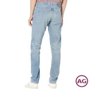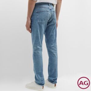 AG Jean's Tellis Modern Slim Jean for men features a light denim wash with faded details and hints of darker indigo visible at the seams and edges. Cut with a fitted upper block and tapered leg opening, the style is slim but not too skinny-it's smart enough to sport at work and casual enough to wear on the weekends. This men's slim straight jean is designed in 11 oz. Lead Denim.